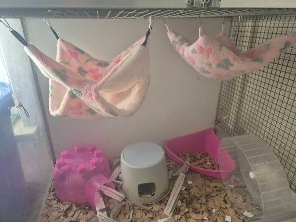 Op zoek naar een comfortabele hangmat voor knaagdieren? De dubbeldekker hangmat is perfect voor kleine huisdieren zoals ratten, cavia’s, hamsters en fretten. De set bestaat uit een inkruiphangmat (slaapzak) en een dubbeldekker hangmat, ideaal om te slapen, verstoppen en spelen.